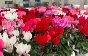 White, red or pink. Cyclamen remain compact, stand upright and retain their bright winter colours